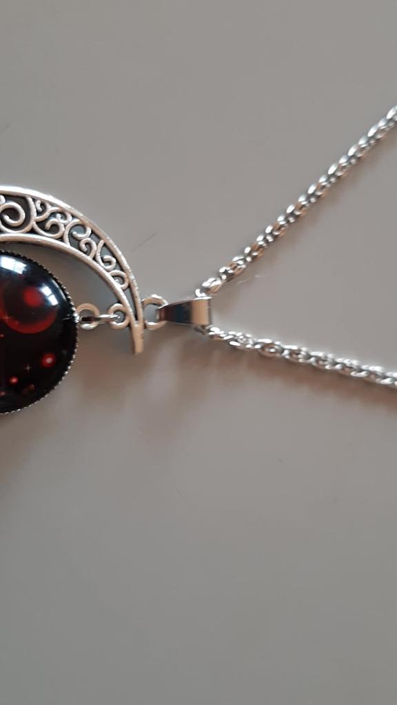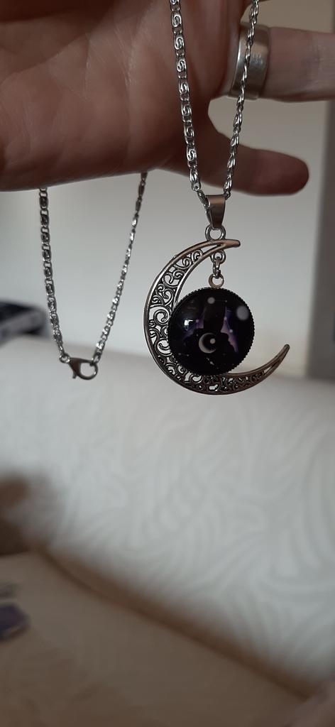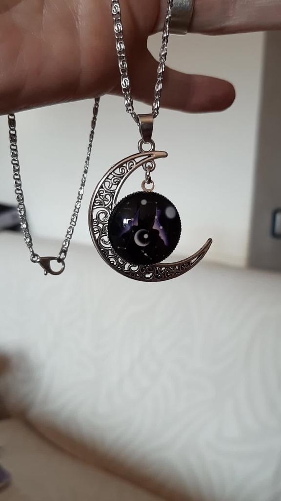 Řetízek krásný, pevný, zapínání snad taky. Je ale potřeba výměnit kroužek, na kterém visí znamení zvěrokruhu. Je příliš velký a znamení zasahuje do půlměsíce, mělo by být uprostřed. Možná by bylo dobré celý šperk přetřít bezbarvým lakem na nehty... Ani po výměně kroužku za malý není pěkné, znamení leží buď na, nebo pod měsícem 😠