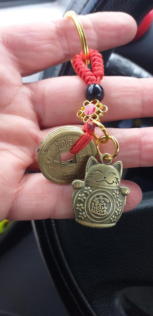 1ks Lucky Cat Five Emperors Mince Mosazný přívěsek na klíče Roztomilé zvíře ručně vyráběné šperky