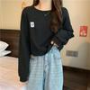 Waffle svetr Dámské tričko s kulatým výstřihem, volný svetr s dlouhým rukávem, jednobarevný top