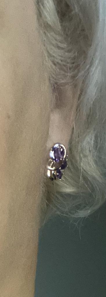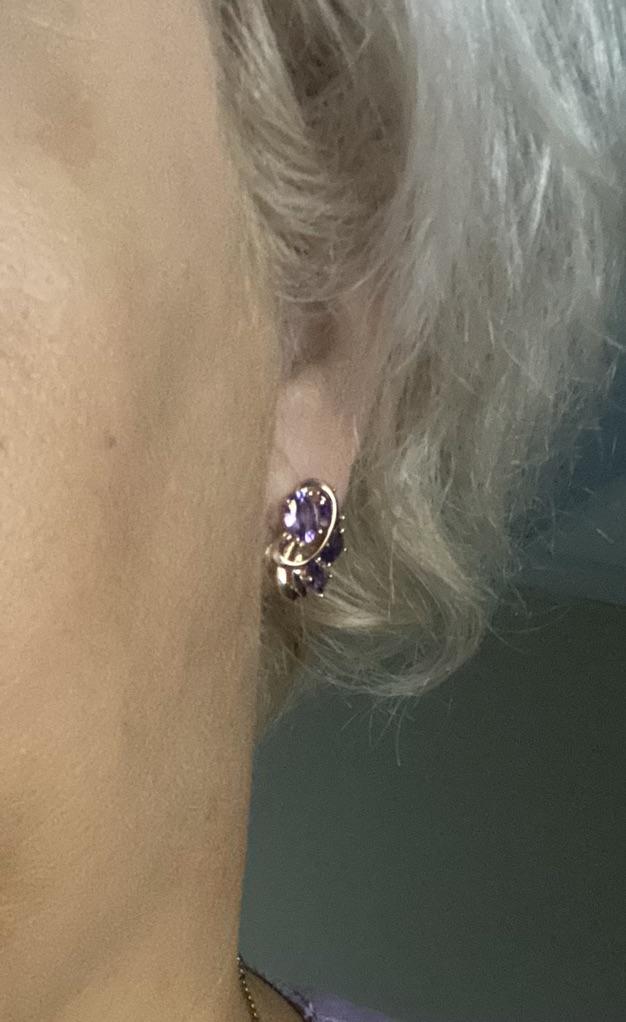 Oválné fialové náušnice se zirkonovým květem pro ženy Módní zlatá barva Lesklé doplňky Vintage šperky