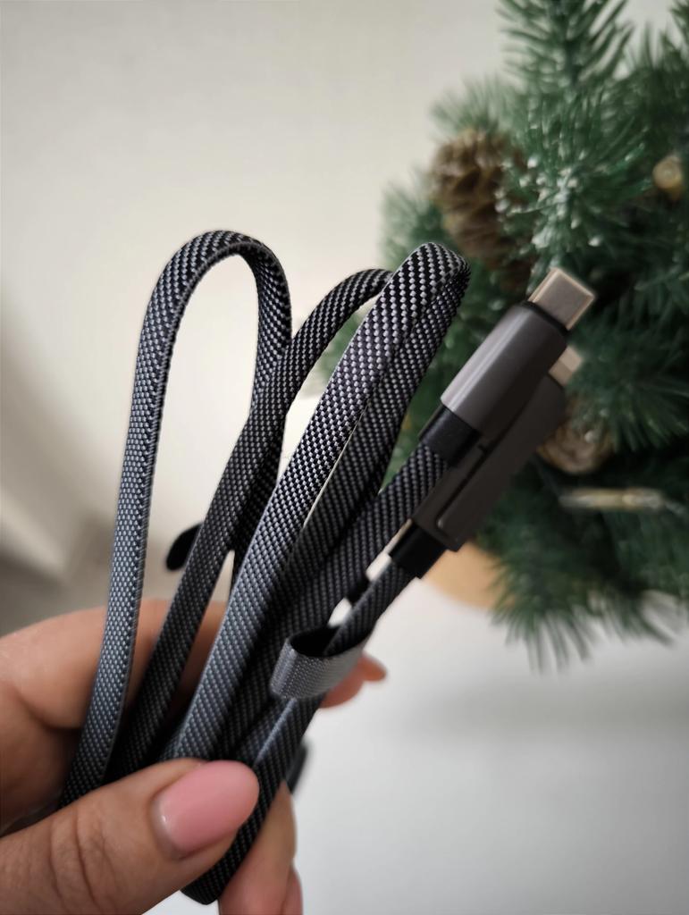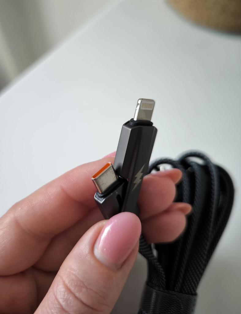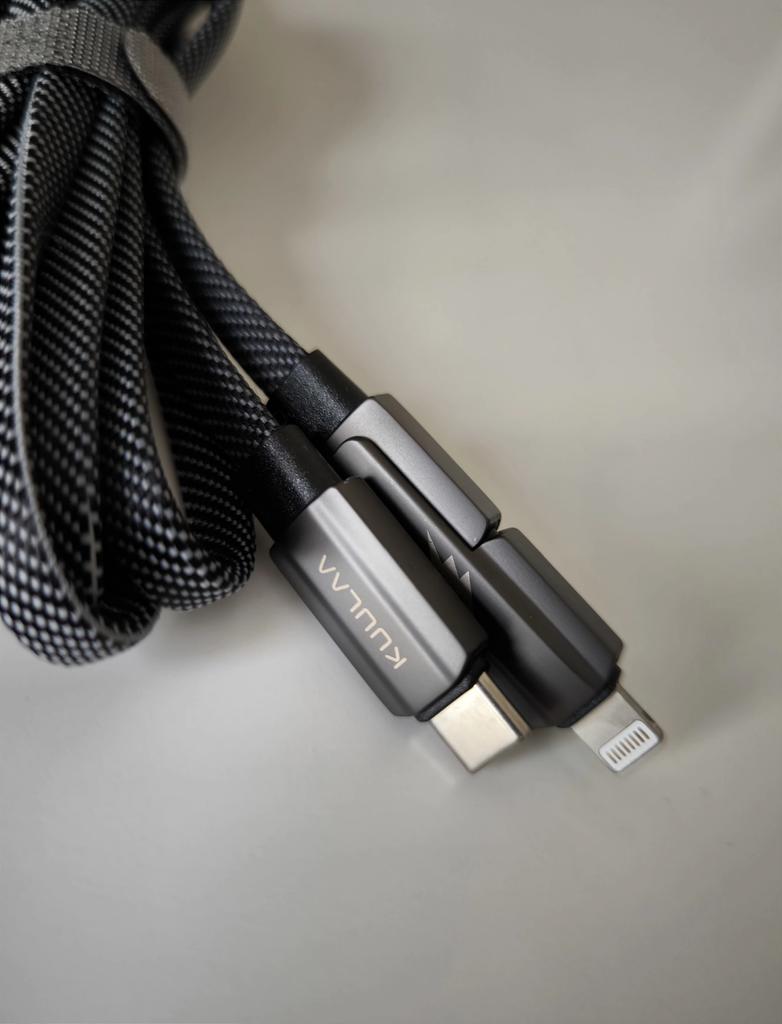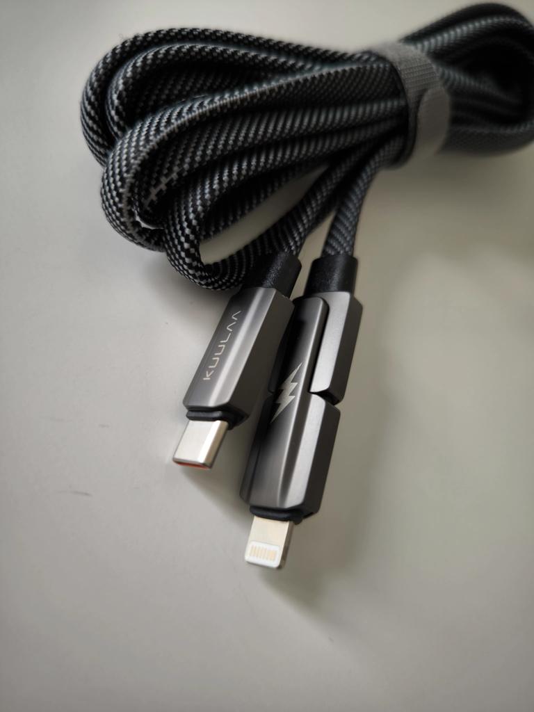 Vysoce kvalitní nabíjecí kabel KUULAA 👌🏻 Type-C se dvěma konektory Type-C a Lightning. Milujte zatahovací design těchto konektorů. Vysoce kvalitní látkové opletení, které je příjemné na dotek, dobře chrání kabel před poškozením a zauzlováním.. Vhodné pro rychlé nabíjení a přenos dat. Šířka pásma 60 W. Mám délku 2m. Skvělé, doporučuji 🤗