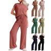Dámské 2dílné soupravy letních krátkých rukávů nařasené topy a široké nohavice teplákové soupravy ladící