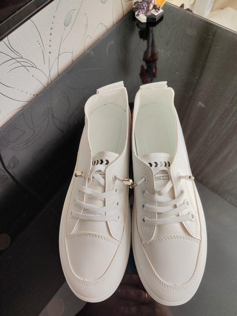 Jarní a letní mělká ústa, malé bílé boty, dámské ploché dno, třmen na jednu nohu, sto odpovídající sportovní kožené boty pro studenty