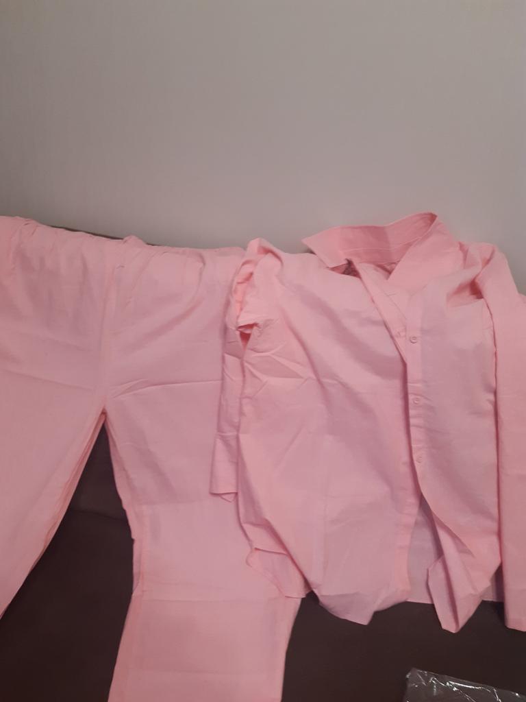 U lnu, bavlny si nejsem jistá. Barva prasečí růžová, ne jako na fotce, celkově působí jako speciální oblečení pro zdravotnický personál