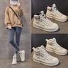 Authentic Leather Clunky Sneakers Women's Winter Cotton Shoes New All-Matching High-Top Shoes Fleece-lined Warm White Shoes