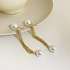 925 Sterling Silver Trend Pearl Long Chain Dangle Earrings Women Double Circle Pearl Earrings Elegant Wedding Party Jewelry