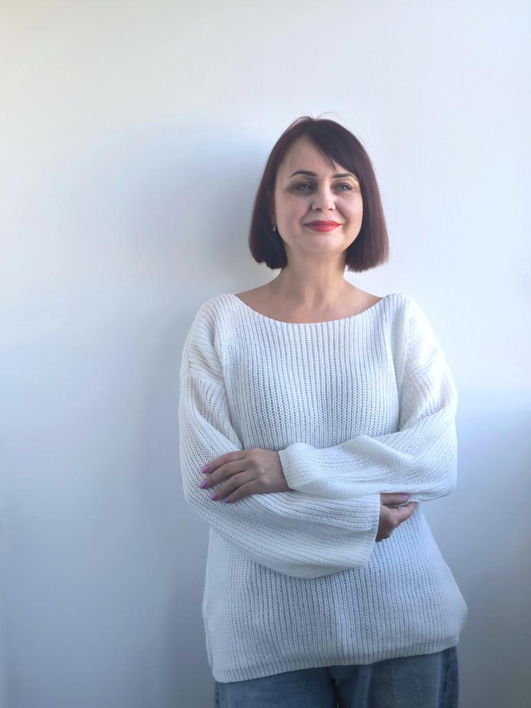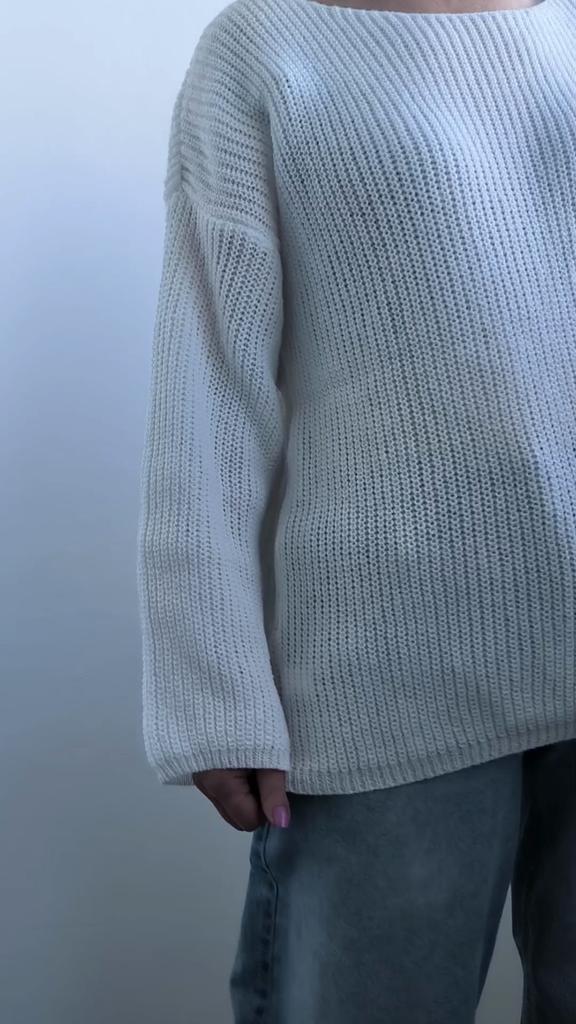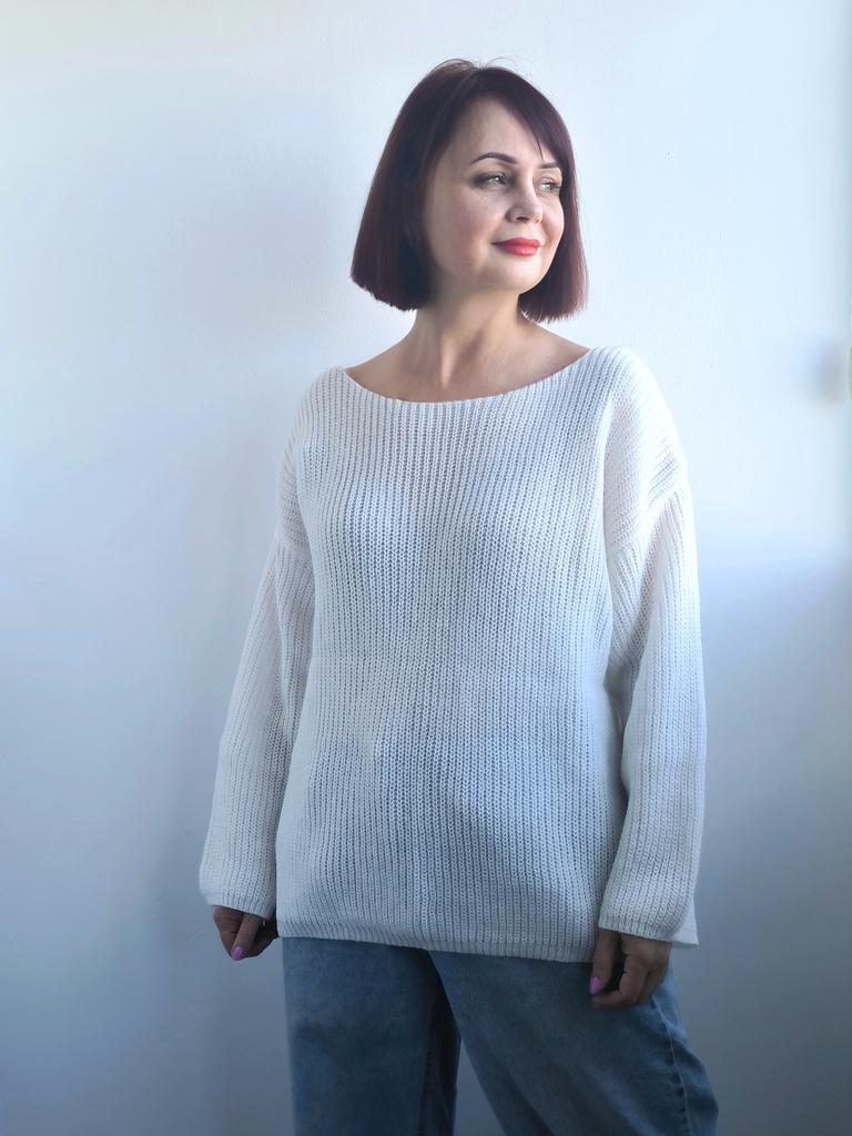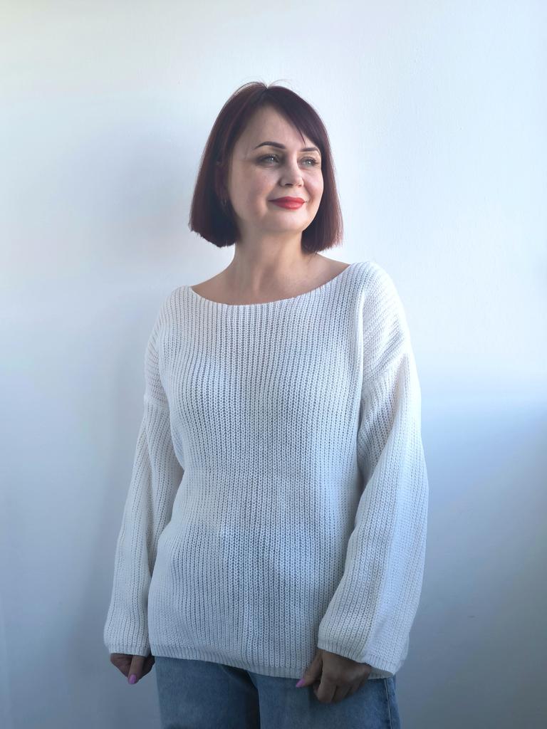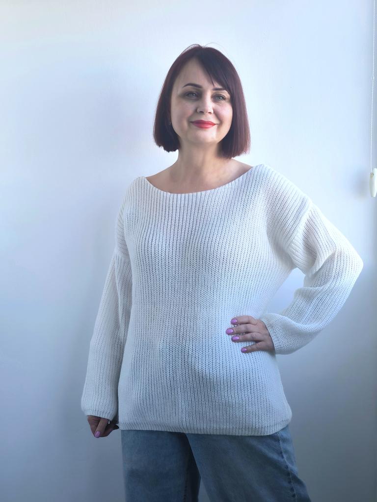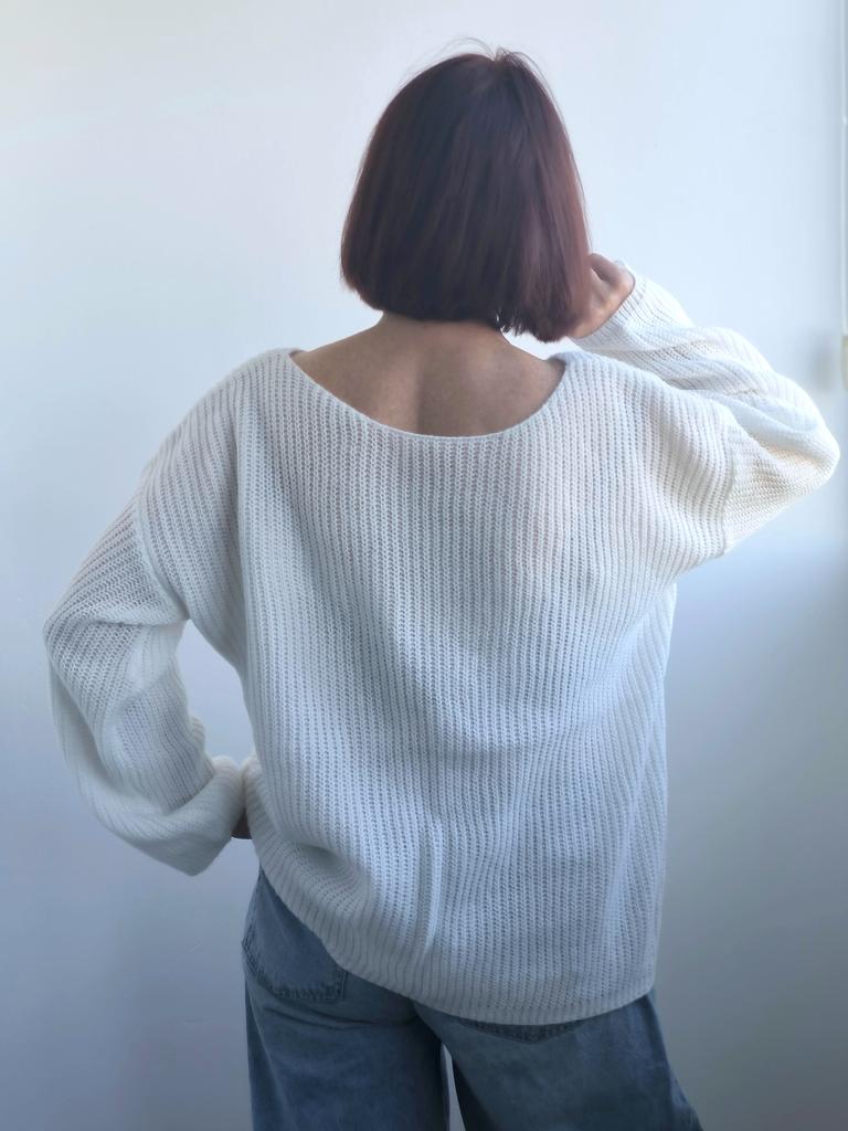 Dámský podzimní a zimní svetr s volným límcem a výstřihem přes rameno