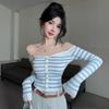 Autumn Trendy Retro Striped Knitted Sling Cardigan+Vest Slim Fit Short Long Sleeve Top Women Temperament Inner Wear Vest