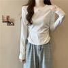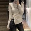 Korean Version Versatile Long Sleeved T-shirt for Women In Spring with Irregular Drawstring To Show Off Weight