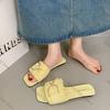Fashion Luxury Summer New Large Size Sandals Square Head Flat Bottom Metal Buckle Slippers Comfortable Sweet Beauty Casual Slippers