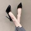 Fashion Sexy Black Patent Leather High Heels Women's Shoes 2024 New Style Nude Color Thin Heel Single Shoes Professional Work