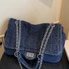 Women's 2024 Fashion Denim Chain Shoulder Tote - High-Capacity Commuter Bag