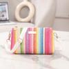 Fashion Women Rainbow Striped Crossbody Shoulder Bag for Girls Small Purse and Handbag Ladies Straw Woven Shell Beach Bag ARI