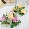2 ks Umělý svícen Garland Mini Umělé květy růží Svatební dekorace Svícen Svíčkový věnec na sloupky Umělý květinový věnec