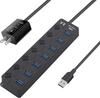 Elecom USB3.0 Hub 7 portů s AC adaptérem (150 cm) Samolepicí/Kompatibilní s magnetem Kompatibilní s MacBook/Surface Pro/Chromebook a dalšími notebooky/N