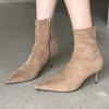 Women's Pointed Toe Thin Heel Ankle Boots Autumn Back Zipper Flannel Chelsea Boots for Women Heeled Shoes Dress Women's Boots