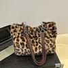 Zimní plyšová taška tote s leopardím potiskem Dámská módní řetízková taška přes rameno Všestranná nadýchaná taška messenger