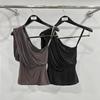 SUBHUMAN Women's European & American Style | Orange Irregular Pleated High Collar One-Shoulder Knit Top