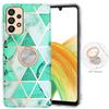 Coque - BOOLING - pour Samsung Galaxy A32 5G - Turquoise - Support Anneau Rotatif 360° - Motif Marbre