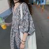 Summer Loose Retro Women's Floral Dress Lantern Sleeve V-neck Pleated Printed Women's Dress
