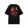 Men's Heat Transfer Print Cotton Round Neck Short Sleeve T-Shirt - Stylish Demon Character Design, Black 200g