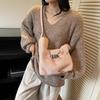 Gentle milk powder color wool bag fashionable shoulder messenger bag new plush double-sided bag premium bucket bag