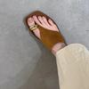 Leather retro metal buckle toe flip-flops shoes women's flat summer wear a pedal beach sandals