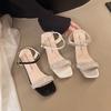 Rhinestone sandals medium heel women's sandals summer new thick heel with buckle fairy wind open toe sandals