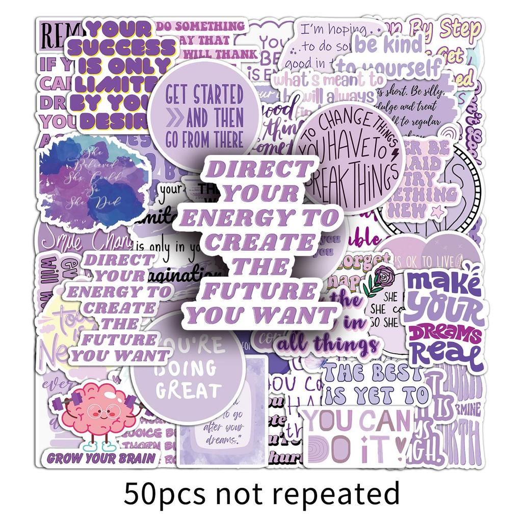 50 Purple Inspirational English Sentences Graffiti Stickers Personalized Creative Decoration Mobile Phone Water Cup Guka Stickers