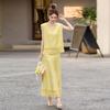 A complete set of women's summer new exquisite lace striped coat skirt two-piece set
