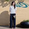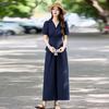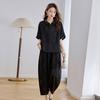 Fashion summer short-sleeved shirt set New V-neck shirt printed wide-leg pants two-piece set