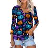 Women's Fashion Casual Print Button-down Shirt 3/4 Long Sleeve Tops
