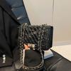 New leather small square bag, versatile V-grid diamond chain bag, large-capacity commuting and going out, shoulder crossbody women's bag