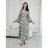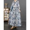 K-style Plus Size Women's Clothing V Neck Vintage Print Lace-up Waist Trimming Ruffles Mid Length Long Length Long Sleeves Dress Trendy Dress