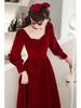 Dámské černé sametové minišaty s dlouhým rukávem - Čtvercový výstřih, Zeštíhlující střih do A, Hepburnský styl, Podzim