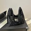 Super wind underarm fashion bag women's three-dimensional black butterfly canvas bag leisure travel literature and art large capacity
