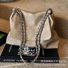 - **Structured Multi-Way Bag Details**: Features a stylish shoulder bag silhouette with PU material, a textured finish, metal chain accents, and dual carrying options (long handles and an adjustable chain strap). It offers versatile carrying options (handheld, shoulder bag, crossbody bag), exuding retro and spacious charm. Five neutral color options cater to diverse style preferences.