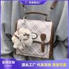 Cute girl student bag new contrasting color plaid backpack high-end texture fashion women's bag