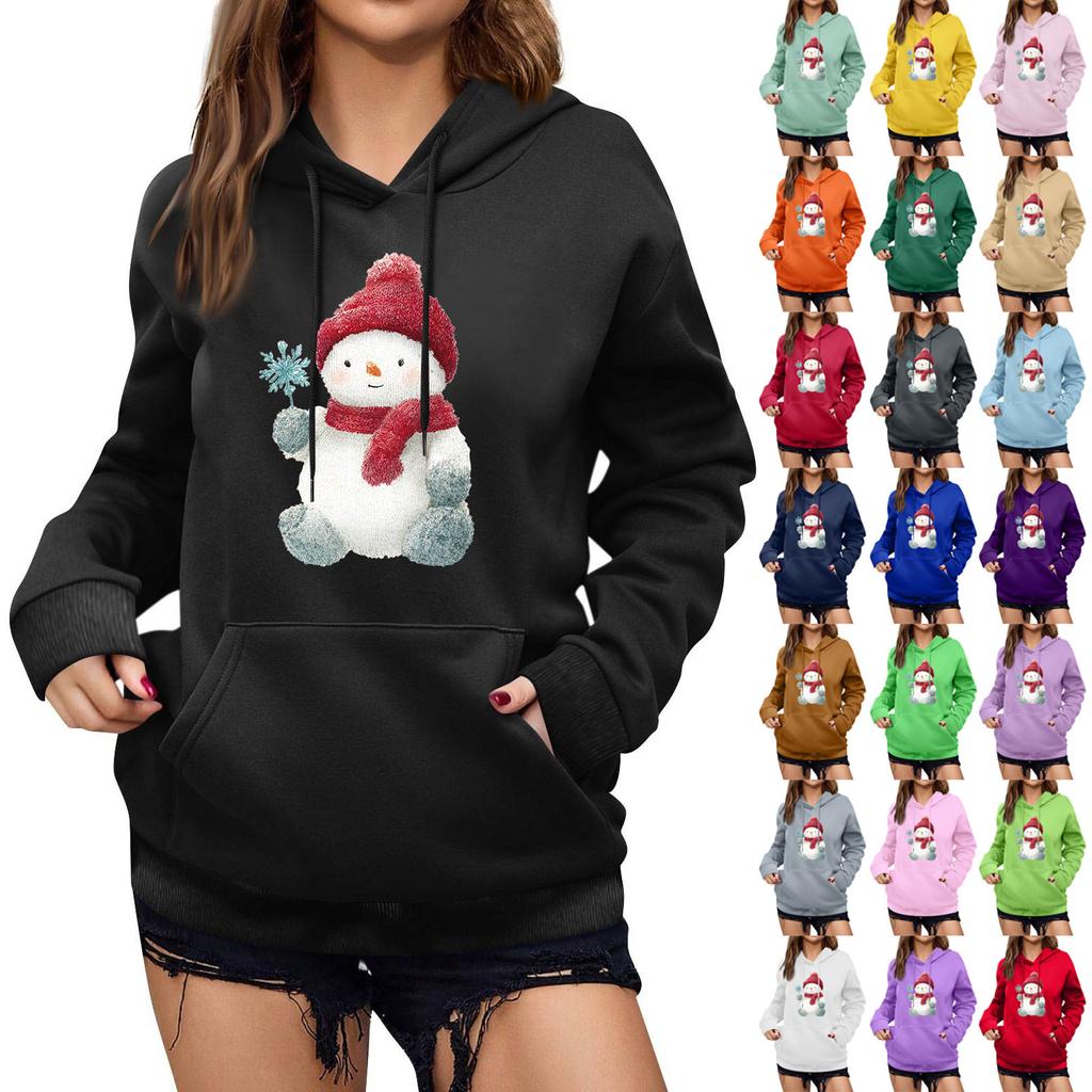 Women's Winter Christmas Printed Pullover Hooded Sweatshirt Fleece Long Sleeve Sweatshirt