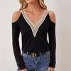 Autumn and Winter Hollow Hot Diamond Long Sleeves Women's T-shirts