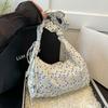 Bow floral pleated cloud bag women's small fresh high-value shoulder underarm bag casual messenger canvas bag bag