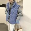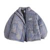 Blue Plaid Down Cotton Coat for Women Winter New Style Small Style Loose Bread Coat Cotton Coat