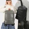Solid Color PU Backpack Men's Large Capacity Backpack Student Sports Travel Computer Bag