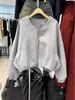 Women's Gray Sweatshirt Jacket - 2025 Early Autumn/Winter Korean-Style Petite Versatile Commuter Outfit
