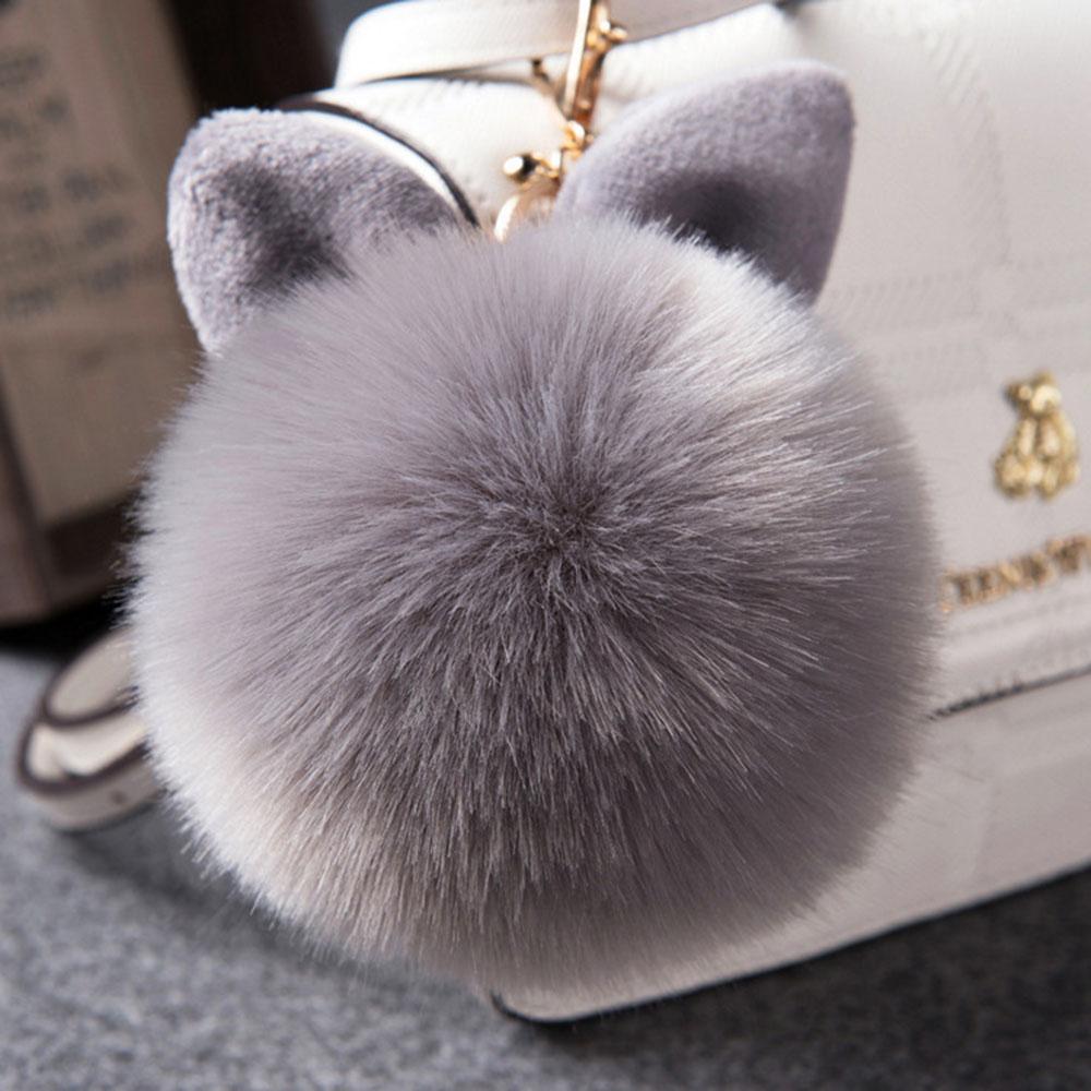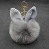 Niedlicher, flauschiger Kaninchenohr-Pelzknäuel-Schlüsselanhänger, Ringe, Anhänger, schöner Pompom, künstlicher Kaninchenfell-Schlüsselanhänger