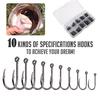 10 Arten von Angelhaken, 500 Stück, scharfe Süßwasserhaken, Angelhaken-Set, Angelzubehör, Haken