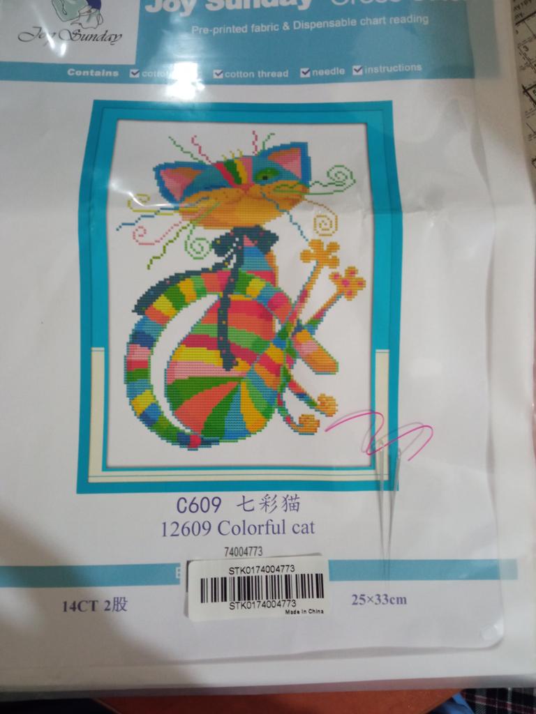 Buntes Katzen-Kreuzstichdiagramm-Muster für Anfänger, 11 CT, 32 x 42 cm