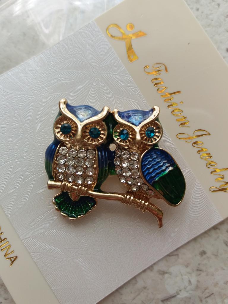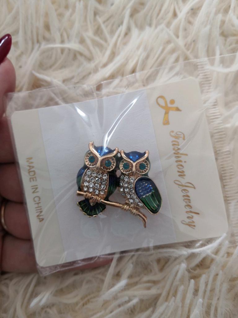 Die Eulenbrosche kam sehr schön an. Mit Kieselsteinen gefärbt. Einmal getragen und verloren. Schade. Das Kind hat sie mit Freude getragen.