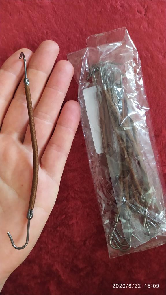Das Gummiband scheint mir solide zu sein, ich habe noch nicht das Händchen für die Handhabung der Haken gefunden. Ich finde sie nicht sehr diskret im Vergleich zu dem, was ich wollte, aber hey .. zu diesem Preis ist es interessant und man muss sich anpassen