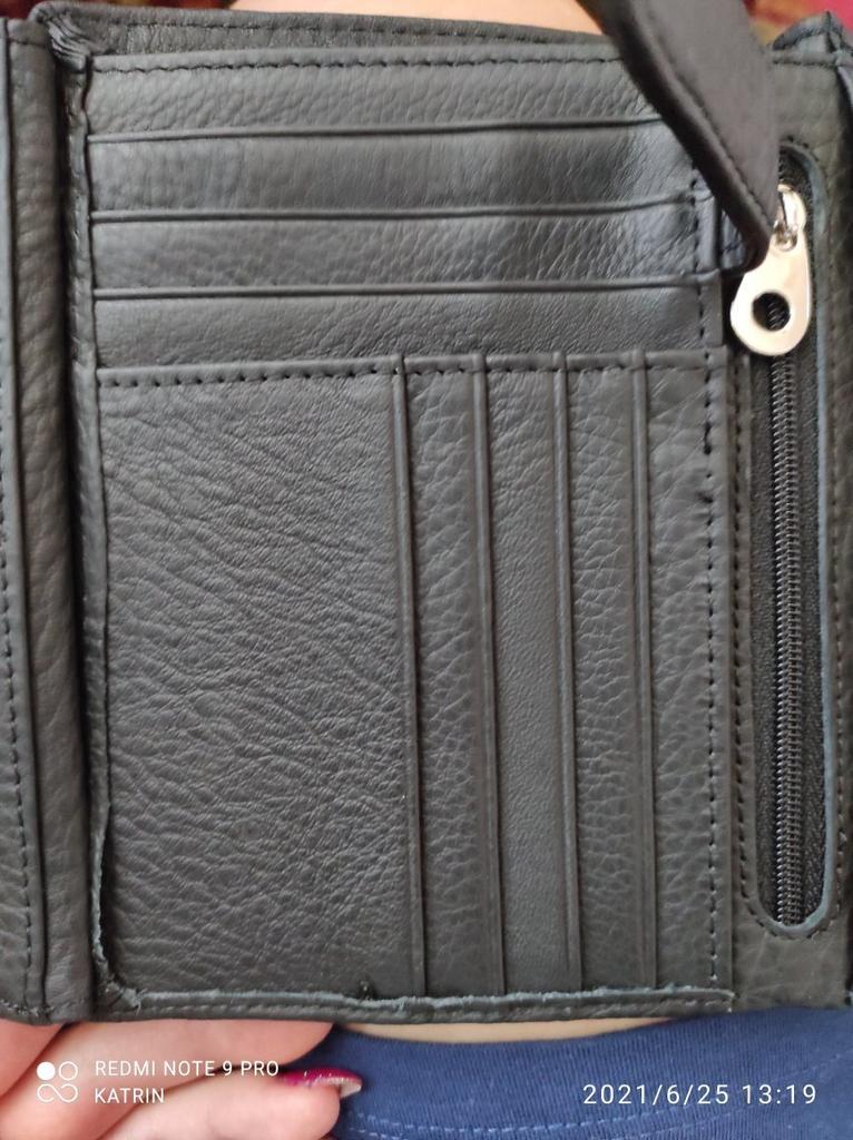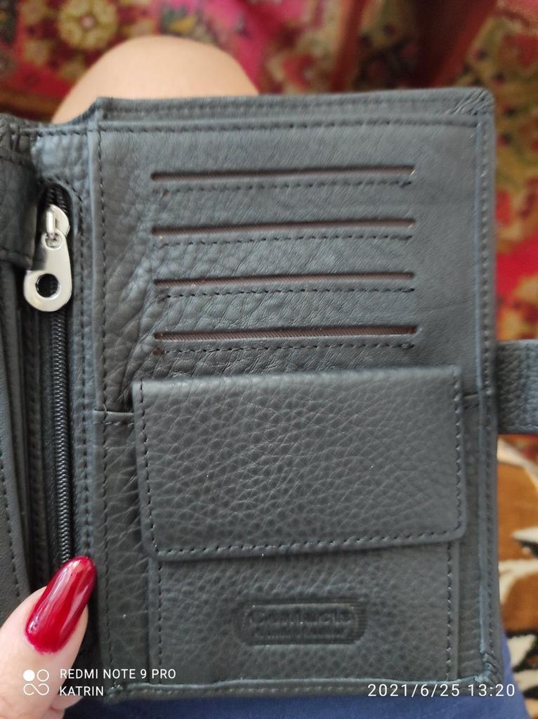 Im Allgemeinen ist das Portemonnaie nicht schlecht, es gibt viele Taschen für Führerscheine, Dokumente, Karten usw. Vielleicht hat mir das Leder einfach nicht so gut gefallen, obwohl es natürlich aussieht. Ich hätte wahrscheinlich das Schwarze nehmen sollen, vielleicht hat es „Noppen“, aber dieses ist glatt, ich mag es so nicht. Ich habe die Bewertung nicht gesenkt, ansonsten war es ordentlich gemacht...